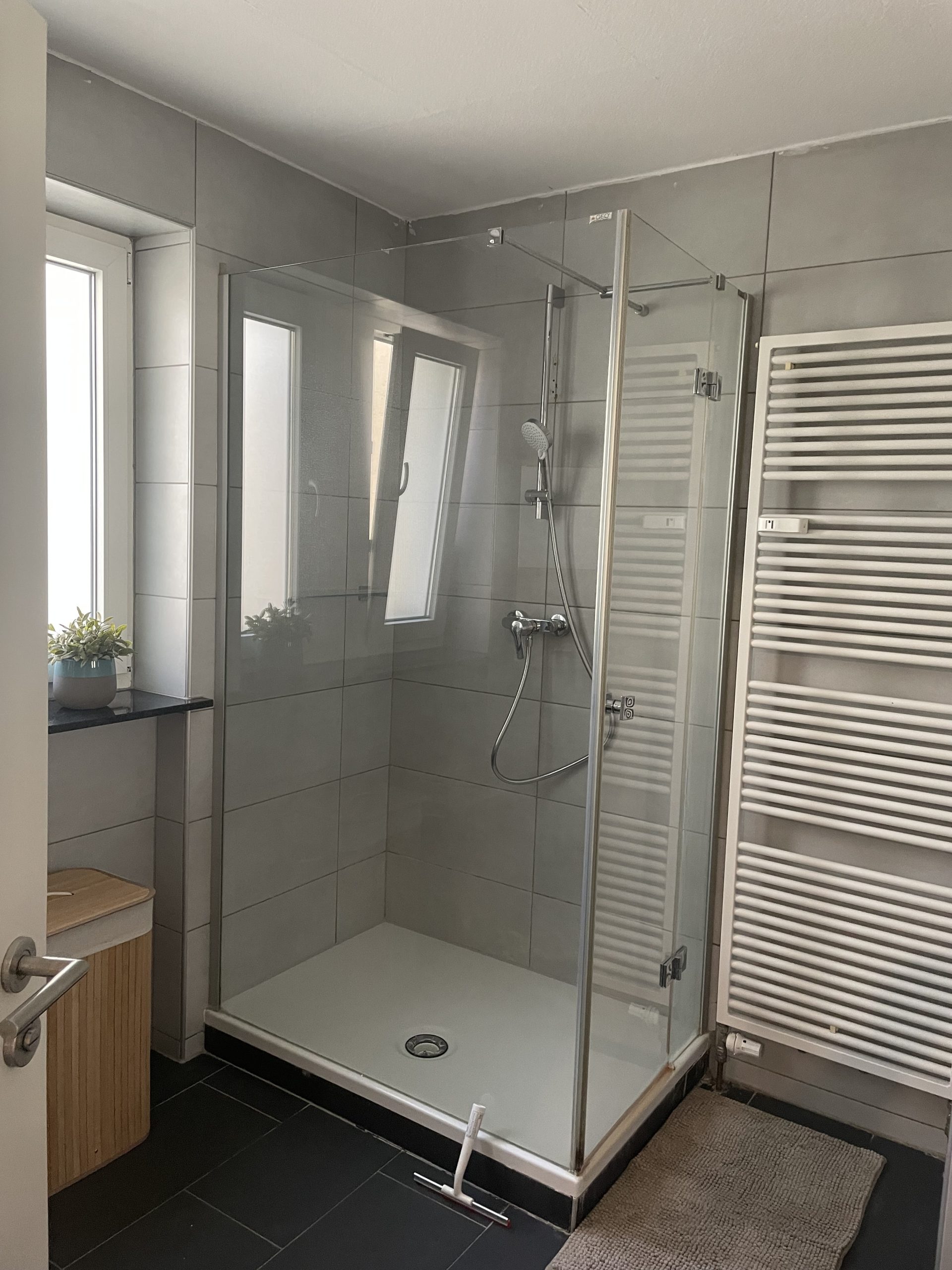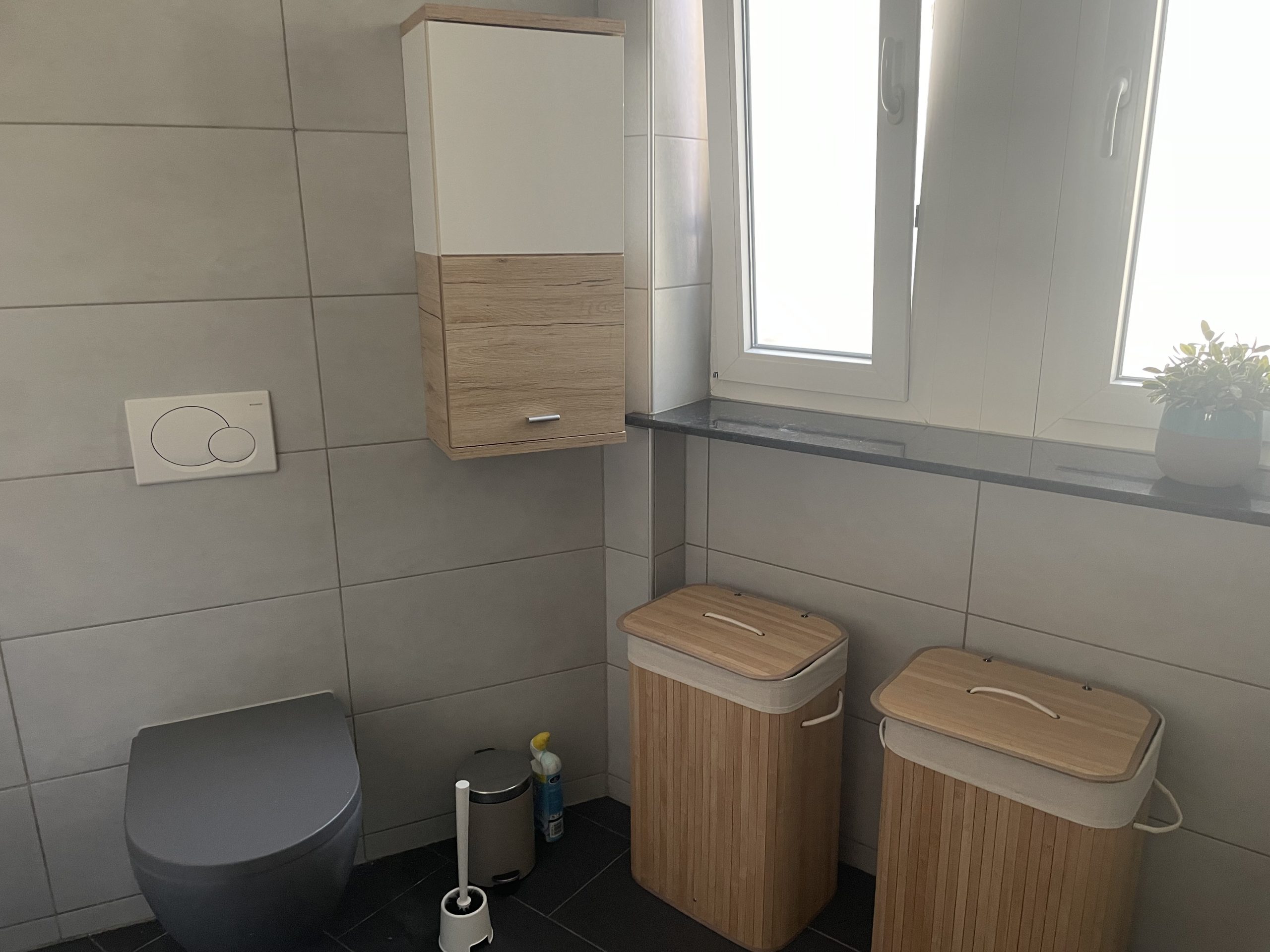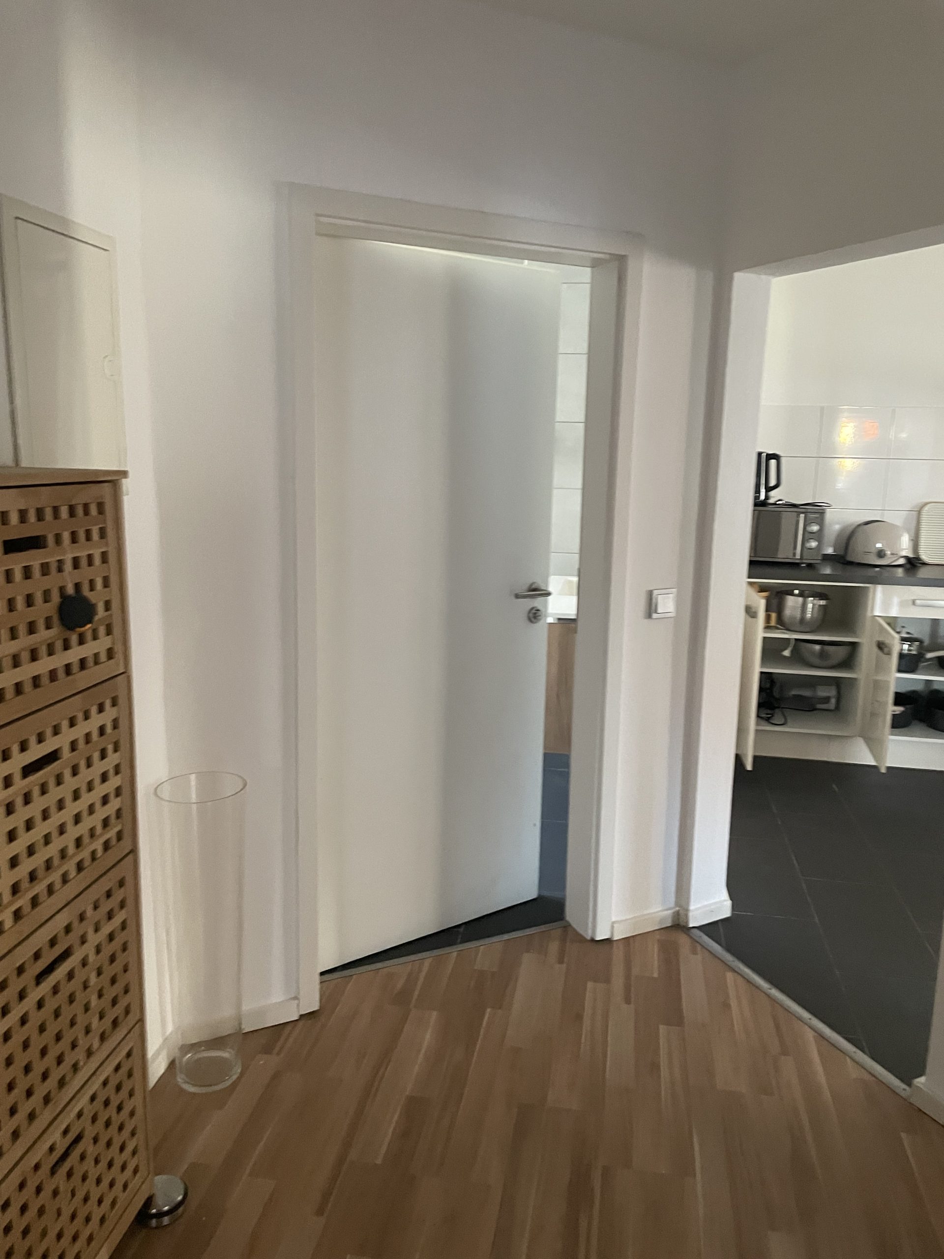 Here you will find a freshly renovated and high quality equipped 3 room apartment. The apartment is on the first floor. The living room is furnished with a couch, a desk and a TV board with television and other nice details. The kitchen offers a fitted kitchen with all electrical appliances as well as a dishwasher and an induction hob. Adjacent to this is a modern and bright dining area. A comfortable and high-quality double bed (1.80m) and a wardrobe are in the bedroom. The 2nd bedroom is also furnished with a bed (1.40m) and a closet. The renovated bathroom is modern in gray with a shower.